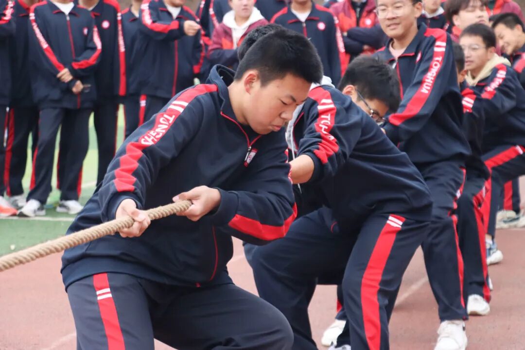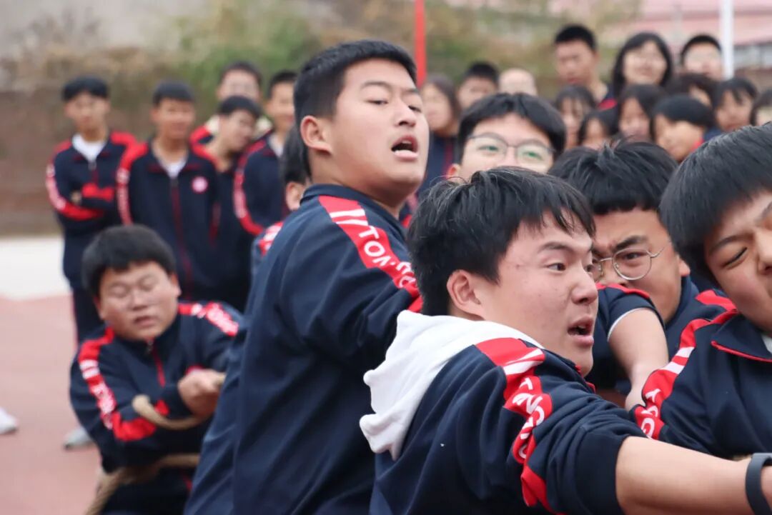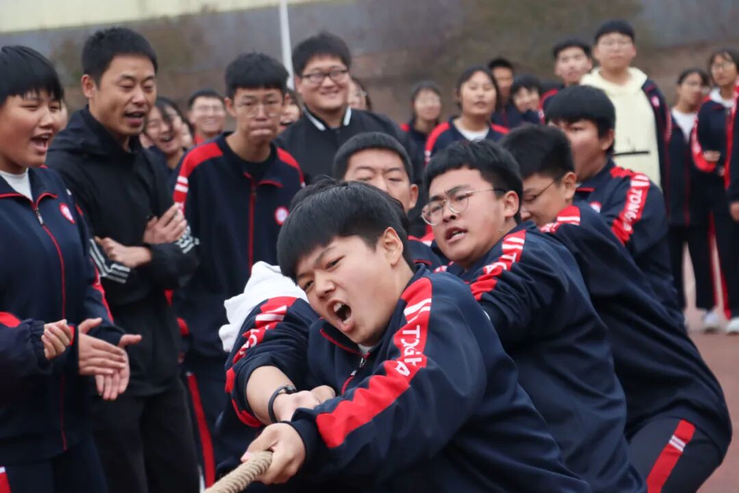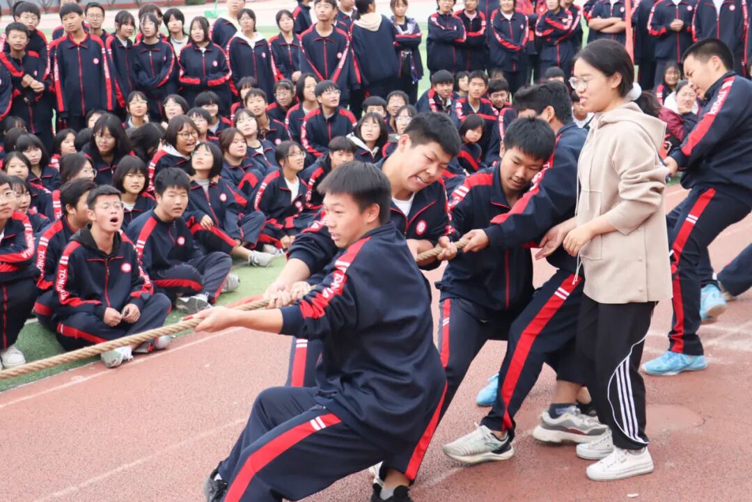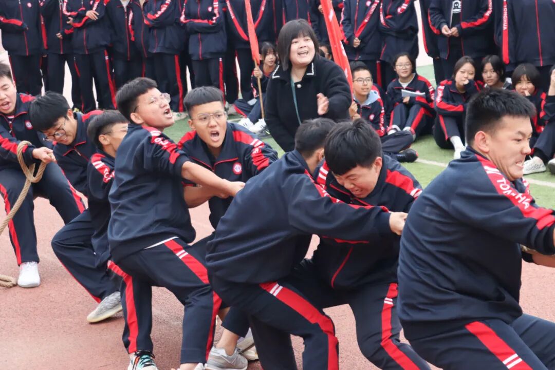 从赛上场的队员到啦啦队,再到班主任,每个人都将自己的力量凝聚在了这条拔河绳之上,绳索两头的拉锯战更是展现着每个班集体的团结与拼搏。