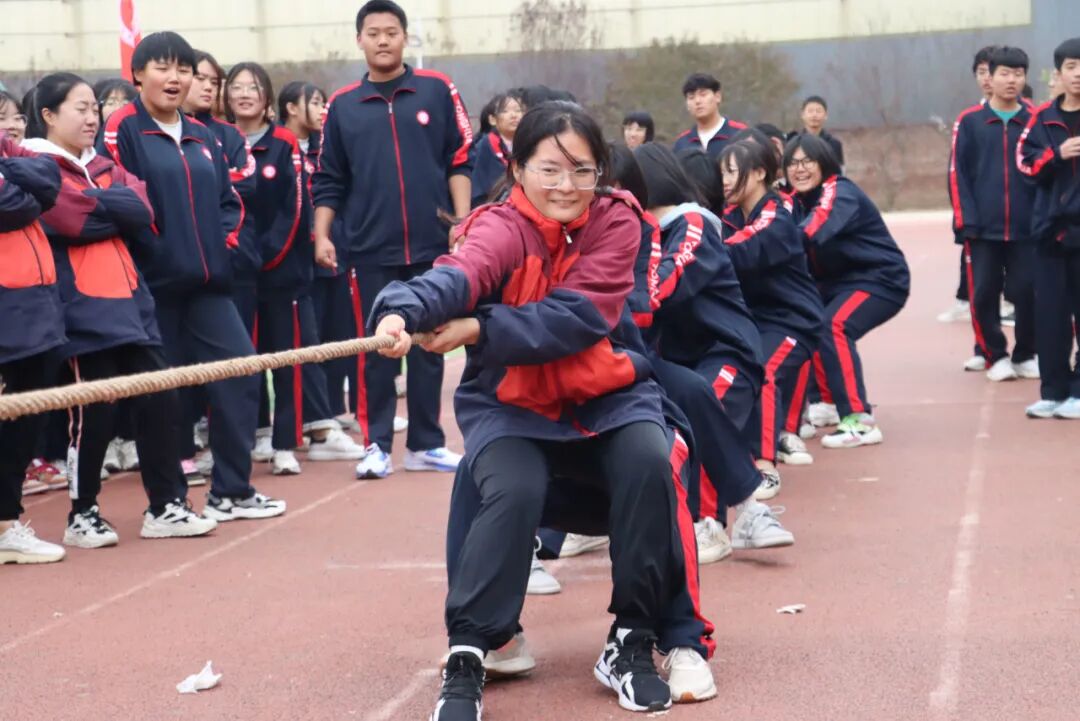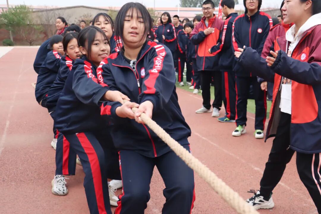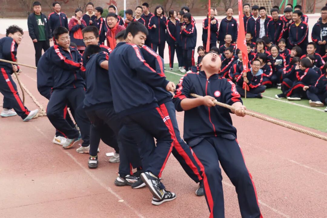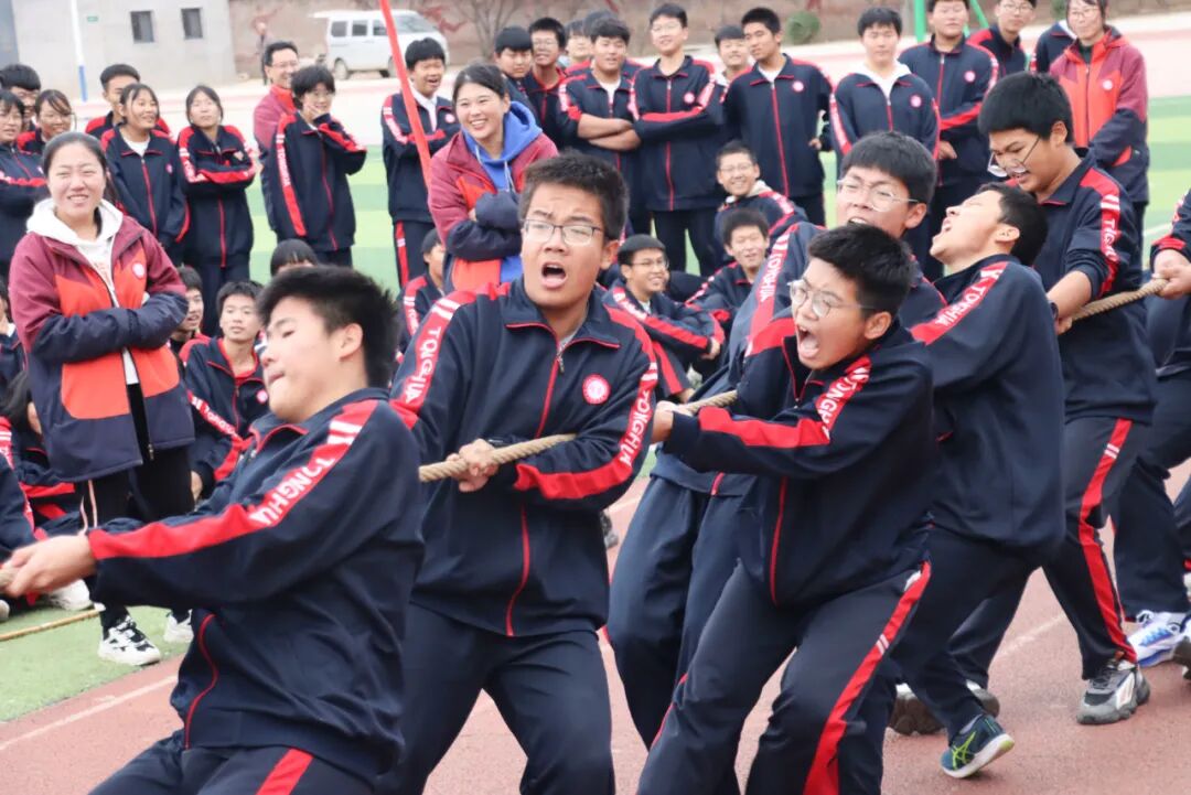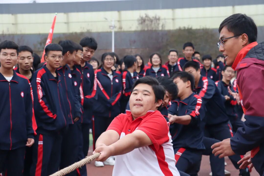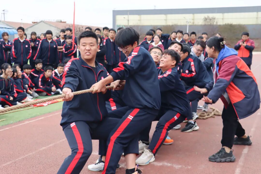从赛上场的队员到啦啦队,再到班主任,每个人都将自己的力量凝聚在了这条拔河绳之上,绳索两头的拉锯战更是展现着每个班集体的团结与拼搏。