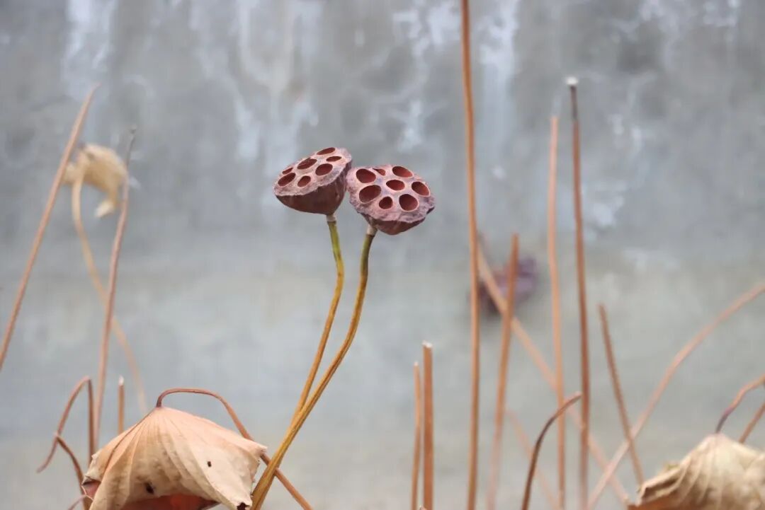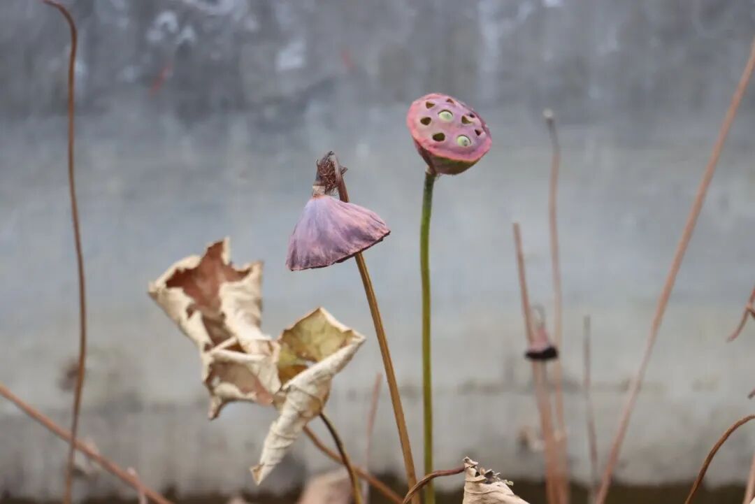 枯荷虽残 却有清美的傲骨,不折的气韵