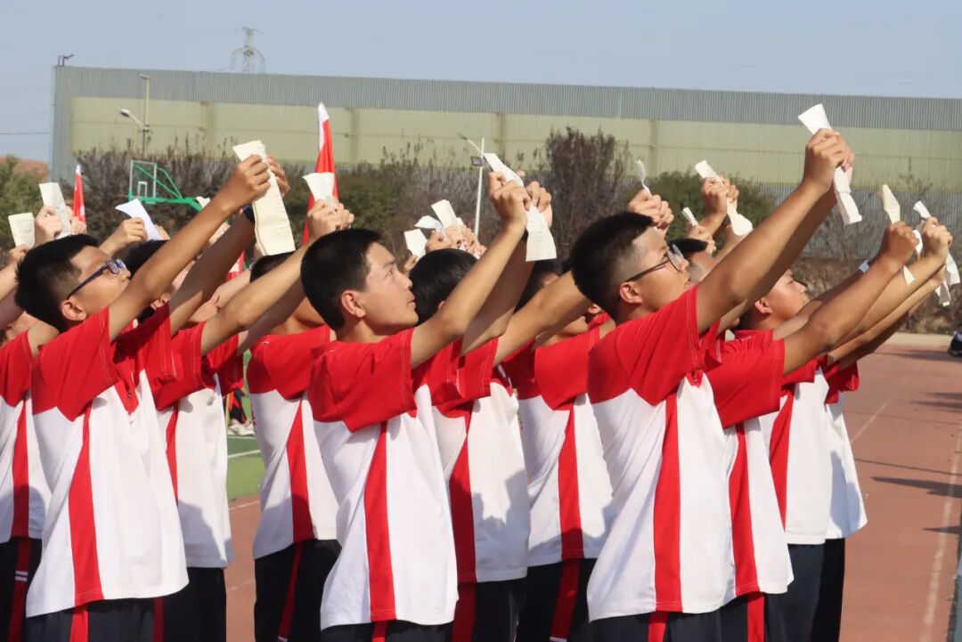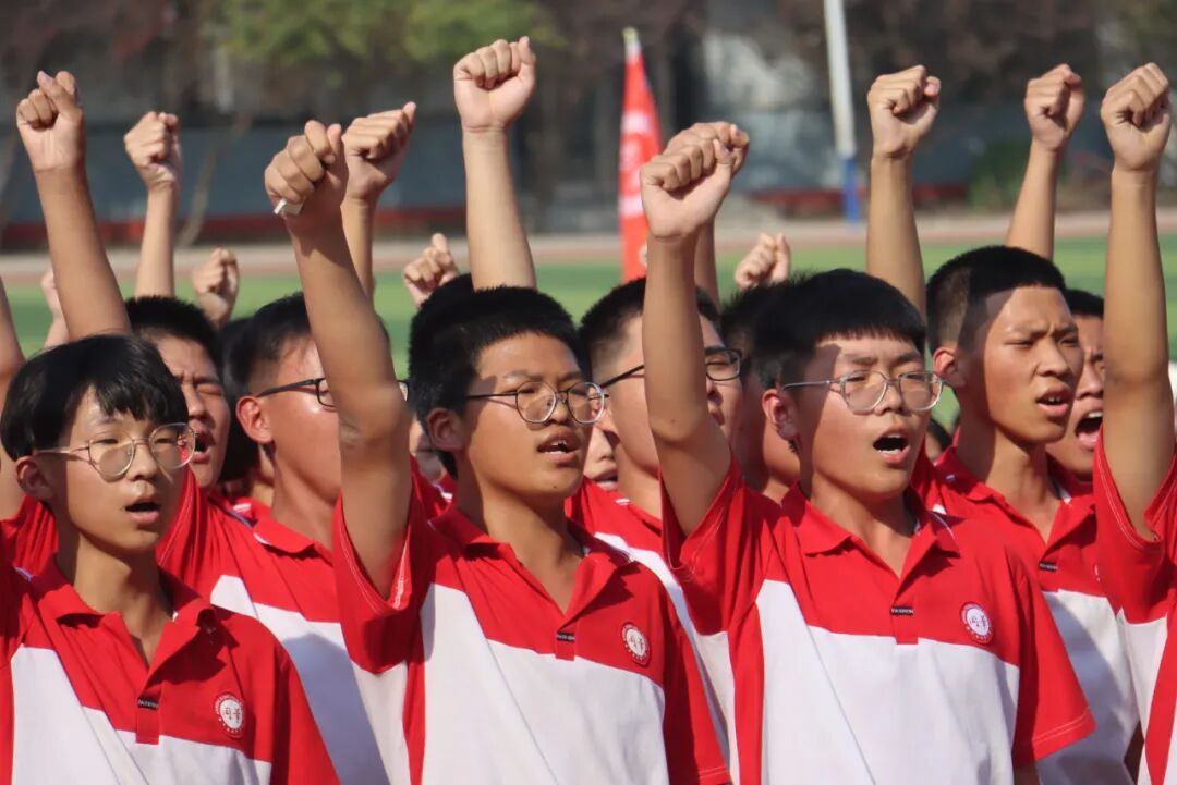 下午2:30分,全体师生在操场上迅速集结,他们精神饱满,着装统一,气势昂扬,彰显着同华学子严明的纪律。随着裁判一声“比赛开始”,会操比赛正式拉开了序幕,各班按照抽签顺序依次出场,开展激烈的角逐。同学们响亮激昂的口号声、洪亮的诵读声、整齐划一的步伐声、铿锵有力的誓言声在学校上空回荡!